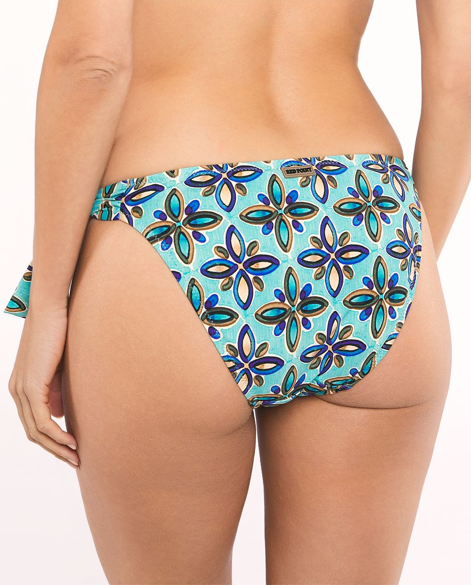 Esta braguita es ideal, es de tiro bajo pero sin ser demasiado pequeña. Lleva unas tiras laterales que permiten ajustar la braguita a la medida que prefieras. El estampado de flores en tonos azules es muy favorecedor. Puedes combinar las tallas